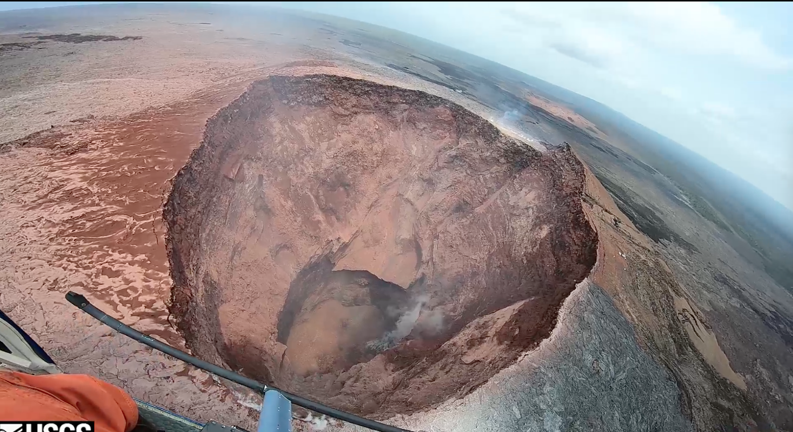aerial of Halemaʻumaʻu 061218 Their caption describes the scene.